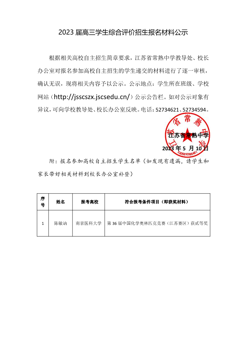 2023届高三学生综合评价招生报名材料公示(5月10日)